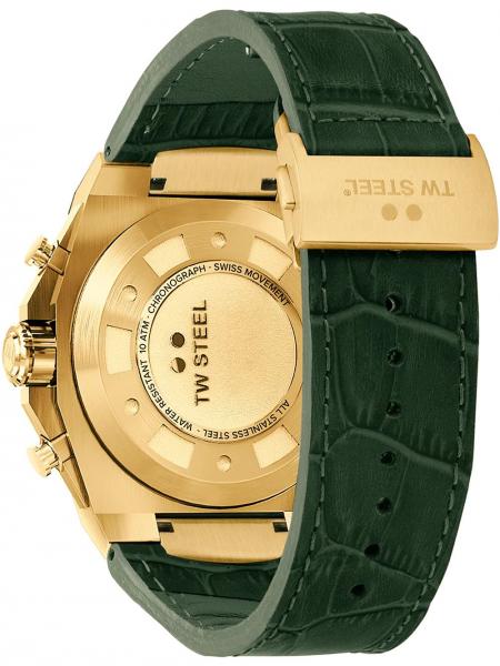 TW Steel CEO Tech Chronograph vyriškas laikrodis. Nerūdijančio plieno dėklas ir žalias odinis dirželis 23cm x 30mm. Įbrėžimams atsparus safyro kristalas. Atsparumas vandeniui 10 ATM (plaukimas/snorkeliavimas).