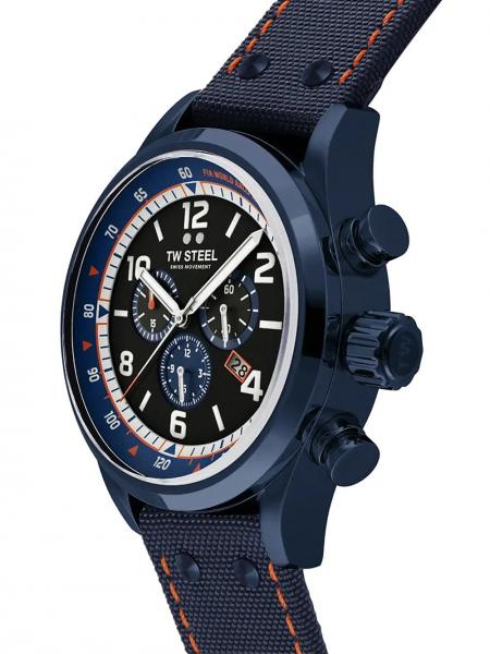 Vyriškas laikrodis TW Fast Lane WRC Chronograph. Mėlynas nerūdijančio plieno dėklas ir mėlynas odinis bei tekstilinis laikrodžio dirželis 23cm x 24mm. Įbrėžimams atsparus safyro kristalas. Atsparumas vandeniui 10 ATM (plaukimas/snorkeliavimas).