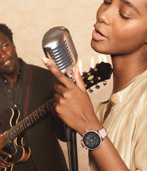 Fossil Gen 6 Rose Gold moteriškas išmanusis laikrodis. Automatiškai seka jūsų veiklą ir tikslus, žingsnius, miegą ir širdies ritmą. SpO2 jutiklis deguonies kiekiui kraujyje matuoti. Greitas įkrovimas – 80% per maždaug 30 minučių. Pranešimų siuntimas į išmanųjį laikrodį. GPS, Google Pay, Google Fit, Nike Run Club, Noonlight, Spotify, Smart Battery Modes. Suderinamas su Android ir iOS išmaniaisiais telefonais. Baterijos veikimo laikas 24+ valandos.